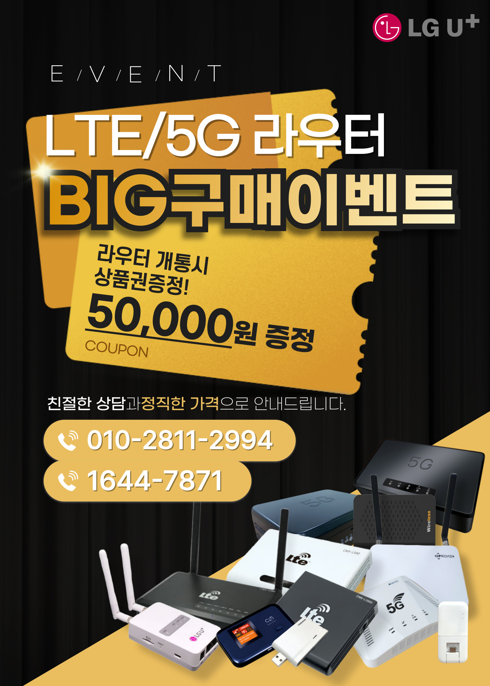 인터넷 + 고급형 WIFI 월 15,000원 (모바일 결합시)